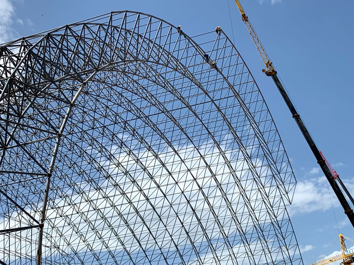 (2)网架加工前应对现场尺寸进行复测,确认无误后方可进行加工、安装;网架制作、运输、安装应遵守《空间网格结构技术规程》JGJ7-2010、《钢网架河津螺栓球节点》JG/T 10-2009、《钢网架河津螺栓球节点用高强度螺栓》 GB/T 16939-2016、《河津钢结构河津工程河津施工规范》 GB50755-2012、《河津钢结构河津工程河津施工质量验收标准》 GB50205-2020。